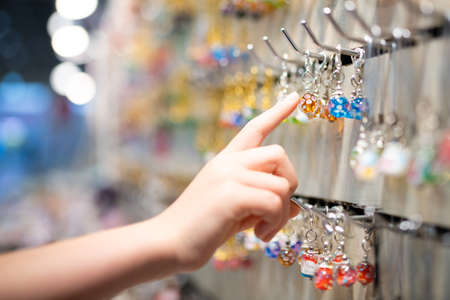 Various shapes and shades of earrings , handicrafts on display during the Handicraft Fair in Kolkata , earlier Calcutta, West Bengal, India. It is the biggest handicrafts fair in Asia.