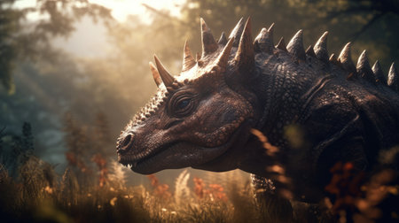 Prehistoric creature or dinosaur in the wild nature. Realistic style drawing. superlative generative AI image.