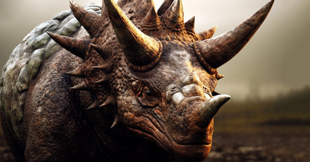 Detailed Closeup Of Triceratops Created Using Innovative Technology.