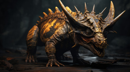 3D rendering of a dinosaur styracosaurus isolated on dark background