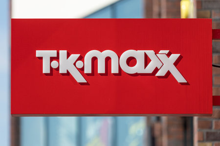 Stade, Germany - August 22, 2019: Wall-mounted signage identifying a TK Maxx store.
