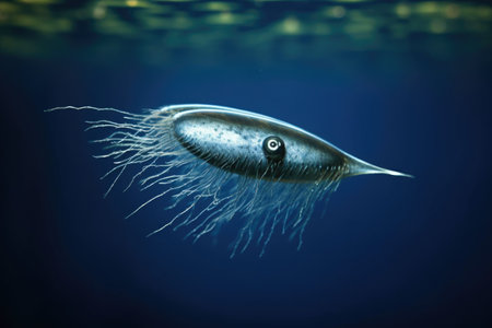 extreme close-up of a paramecium swimming in water, created with generative ai