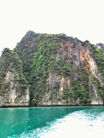 Beautiful tropical island of Koh Phi Phi, Thailand with blue water and green rocky formations