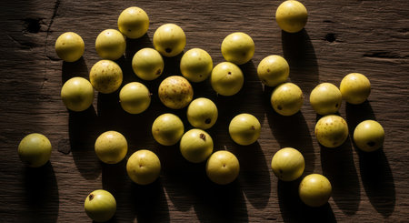 Indian gooseberry (Phyllanthus emblica), Malacca tree, or amla fruit. Emblic fruits for sale in the market.