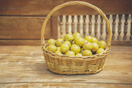 Blur background, The fruit of the orange and makhampom is on the hand as the harvest from the backyard this morning.