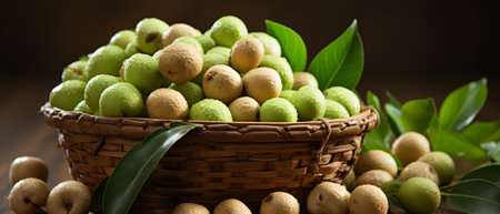 fresh sapodilla fruits on old wooden background. tropical fruits concept