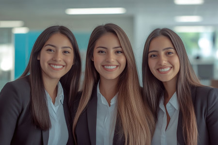 Charming Latina Trio in Business Attire, Office Setting