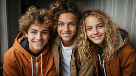 Portrait of group of smiling teenagers standing together and looking at camera