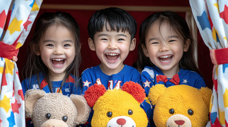 group of joyful children is deeply involved in creating imaginative play handmade puppets in colorful and whimsical classroom setting encourages creativity and fun