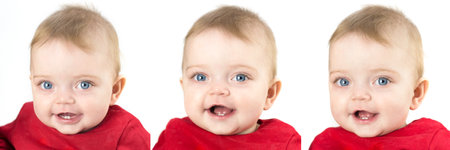 One baby posing 3 times in the hear see speak no evil poses