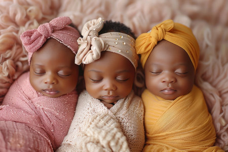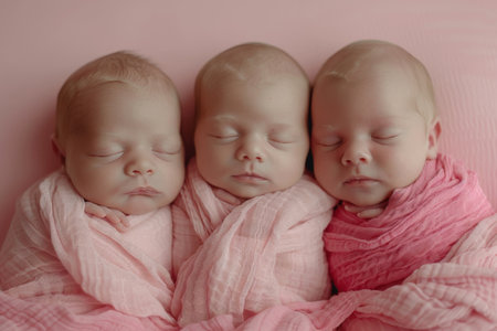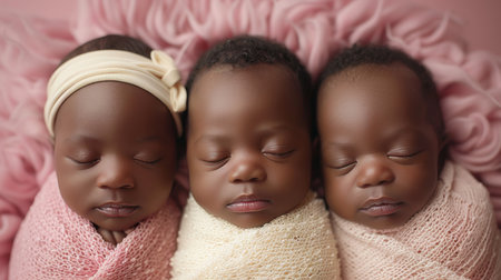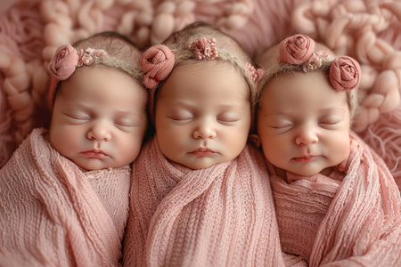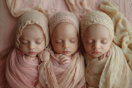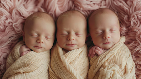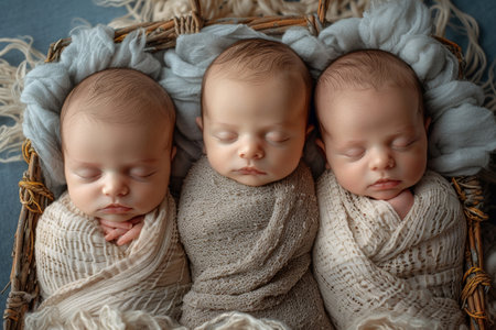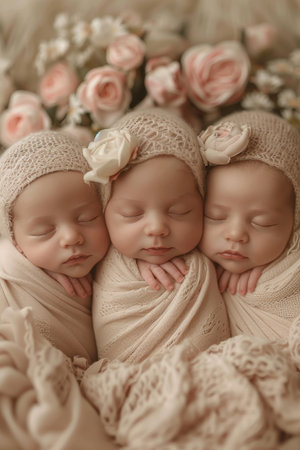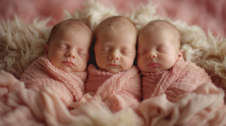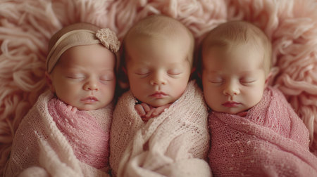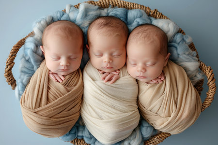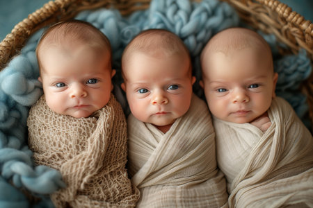 Portrait of newborn triplets are lying in the bed