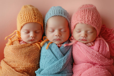 Three newborn children . Photo shoot of newborn babies.