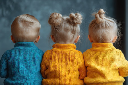 Three Children in Knitted Sweaters, Back View