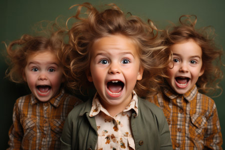 Screaming cheerful young twin girls