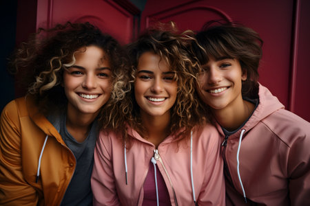 Group of young multiethnic women with curly hair smiling at camera