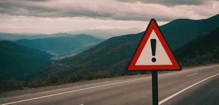 Attention about dangerous road - road sign. Generative AI