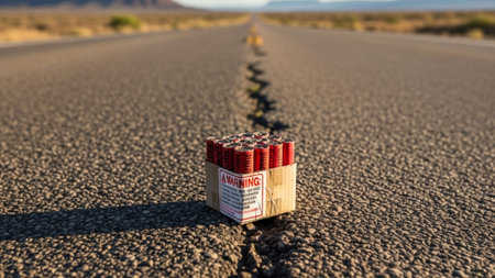 An ultrawide 16:9 cinematic environmental shot showing a small, unopened box of firecrackers wrapped