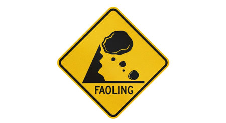 Road sign. Danger falling stones.