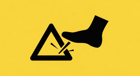 Illustration of a warning sign with a foot on a yellow background