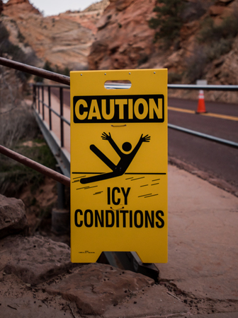 Caution Icy Conditions Sign along trailhead access