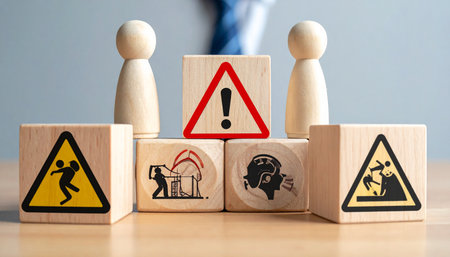 Wooden blocks with warning signs. Risk management, safety and security concept
