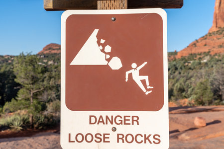 Danger Loose Rocks sign on a hiking trail