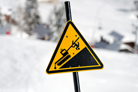 Danger! Snowcat sign on a Ski Area
