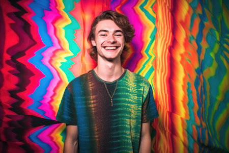 a happy young man standing against a psychedelic background, created with generative ai