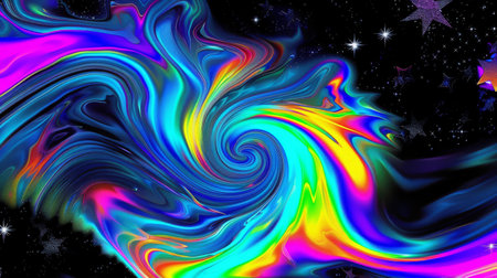 psychedelic abstract colorful swirl with stars scattered in the background