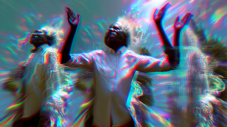 Exploration of distorted patterns and digital noise in vibrant color transitions
