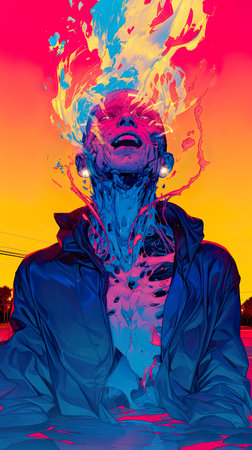 Man colorful psychedelic experience. Artwork trend. Generate AI
