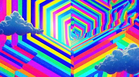 Exploration of vibrant op art patterns with dynamic geometric shapes and optical effects