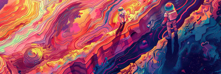 Exploring cosmic patterns through abstract celestial imagery and vibrant colors