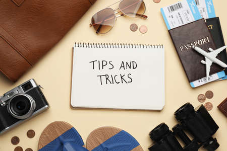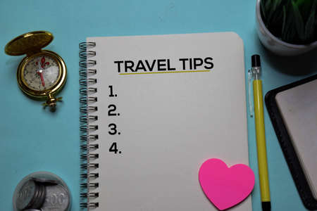Travel Tips write on a book isolated on office desk.