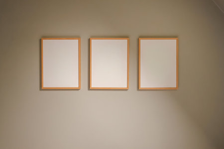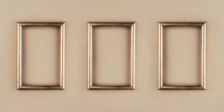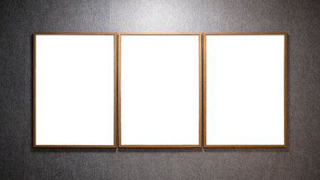 Three blank picture frames aligned in a row for your designing needs