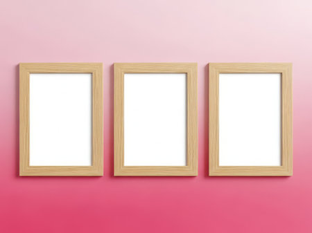 Three identical blank wooden frames hanging side by side on a neutral wall, creating a clean minimalist interior design element