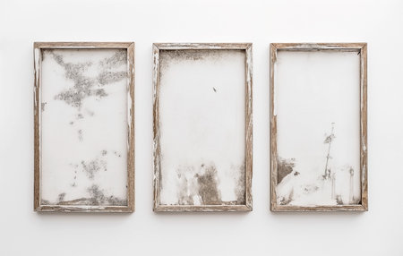Three blank frames on wall