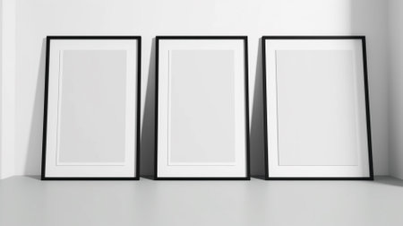 3 black frames on the floor, empty white wall in the background, bright room, natural light, minimalist style, close-up shot, hyperrealism, photorealistic --chaos 30 --ar 16:9 --v 6.1 Job ID: ec208317-5817-4c0d-99a3-c903e9e66009