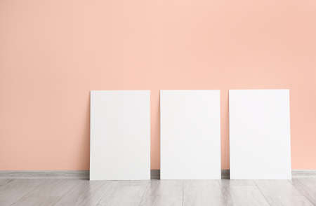 Blank posters near color wall
