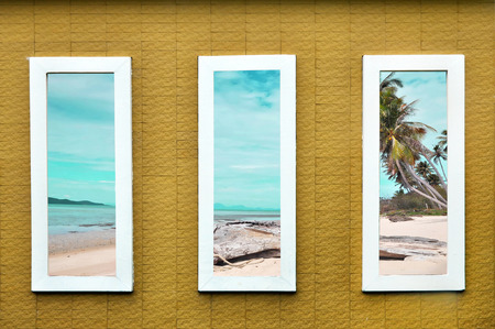Concrete window frame reveal sea view landscapes.