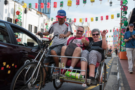 Malacca, Malaysia, 31 Jan 2014 - Trishaw ride in UNESCO historical city of Malacca