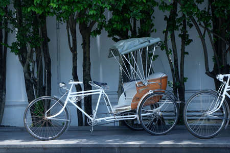 CHIANGMAI, THAILAND - JULY 29: Tricycle bicycle taxi parking at the street for customers on July 29, 2014 in Chiang Mai,Thailand. Tricycle bicycle taxi is one of the public transport in Thailand.