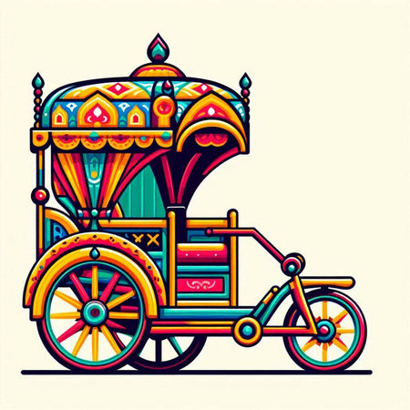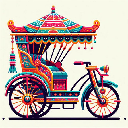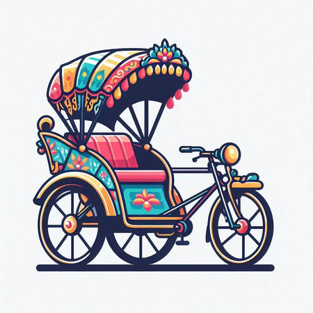 Colorful hand drawn vector illustration of a traditional rickshaw.