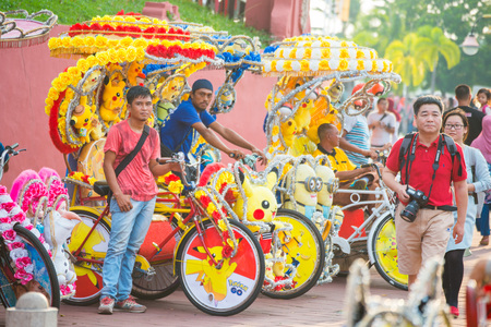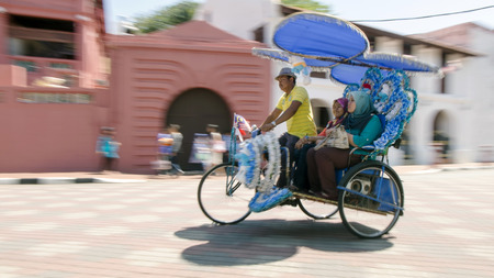 Malacca, Malaysia - February 21, 2016 :Trishaw is popular public transports around the Dutch Square Malacca, Malaysia