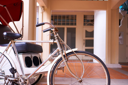 GEORGE TOWN,PENANG ,MALAYSIA- CIRCA September 06, 2015: Trishaw vintage style wait for service traveller in Georgetown, Penang, Malaysia.