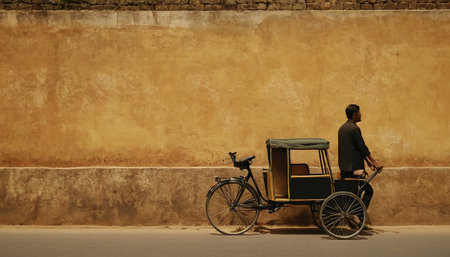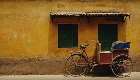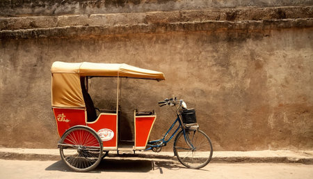 Rickshaw on old Indian town street, local atmosphere, Asian culture and travel concept