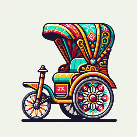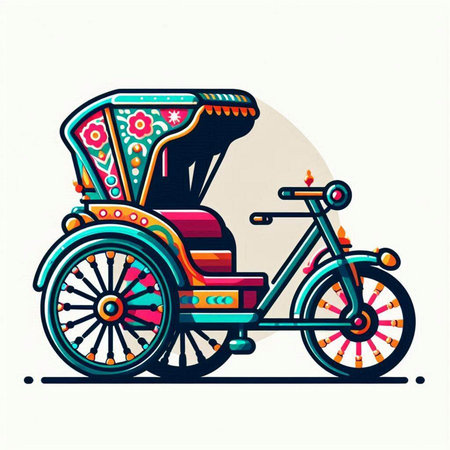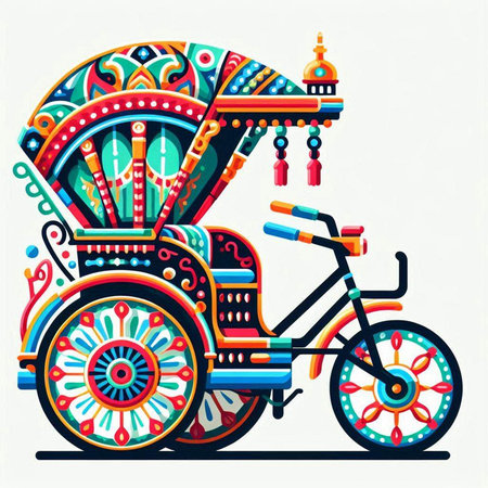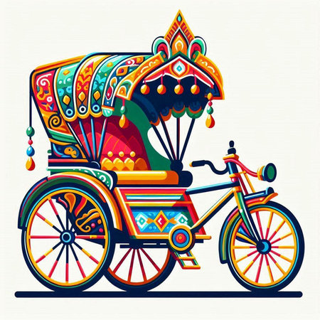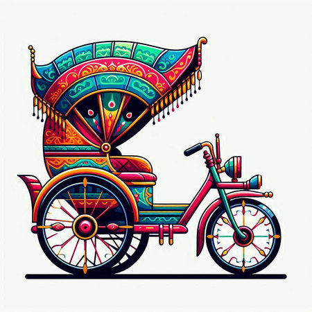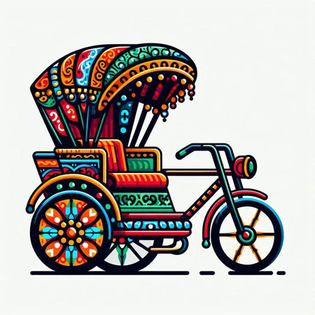 Colorful Indian tricycle. Hand drawn vector illustration for your design