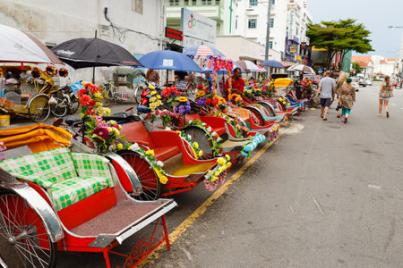 Georgetown, Penang/Malaysia - Feb 29 2020: Rickshaw park in row.