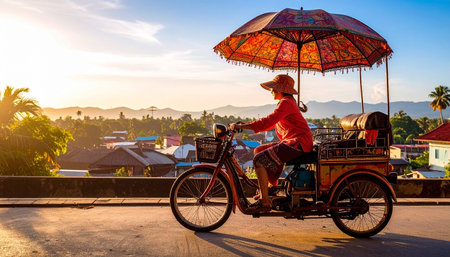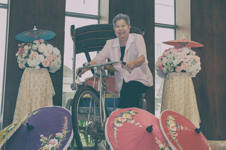 asian elderly senior elder woman with traditional Thailand tricylcle