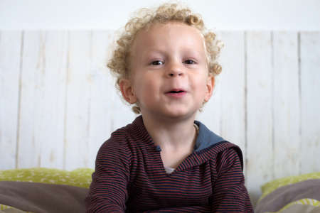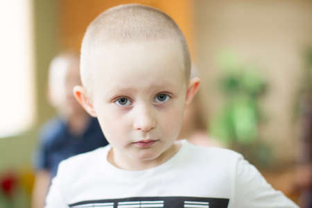 Belarus, the city of Gomil, May 30, 2019. Photoshoot in kindergarten. Portrait of a preschooler boy with blue eyes.